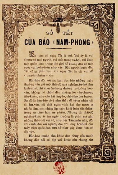 Từ hơn thế kỷ nay, báo chí Việt Nam vẫn có lệ tạo ra ấn bản báo xuân, bản đặc biệt khác với ấn bản thường ngày, nhưng ít ai nhớ rằng, người tạo ra khuynh hướng đó là học giả Phạm Quỳnh (1892-1945), ông là người tạo ra ấn bản đặc biệt chào xuân đầu tiên của người Việt Nam, và từ đó trở thành truyền thống cho đến nay. Học giả Phạm Quỳnh chết năm 1945, mà theo nhiều nguồn sử liệu khác nhau tổng hợp, là do ông khác biệt quan điểm chính trị với những người Cộng sản. Hơn nữa, vào lúc đó có tin người Pháp quay lại và xây dựng một nhà nước độc lập, lại có thể yểm trợ Phạm Quỳnh trở thành người đứng đầu. Mãi đến năm 1956, người ta mới tìm thấy thi hài của ông, trong rừng.