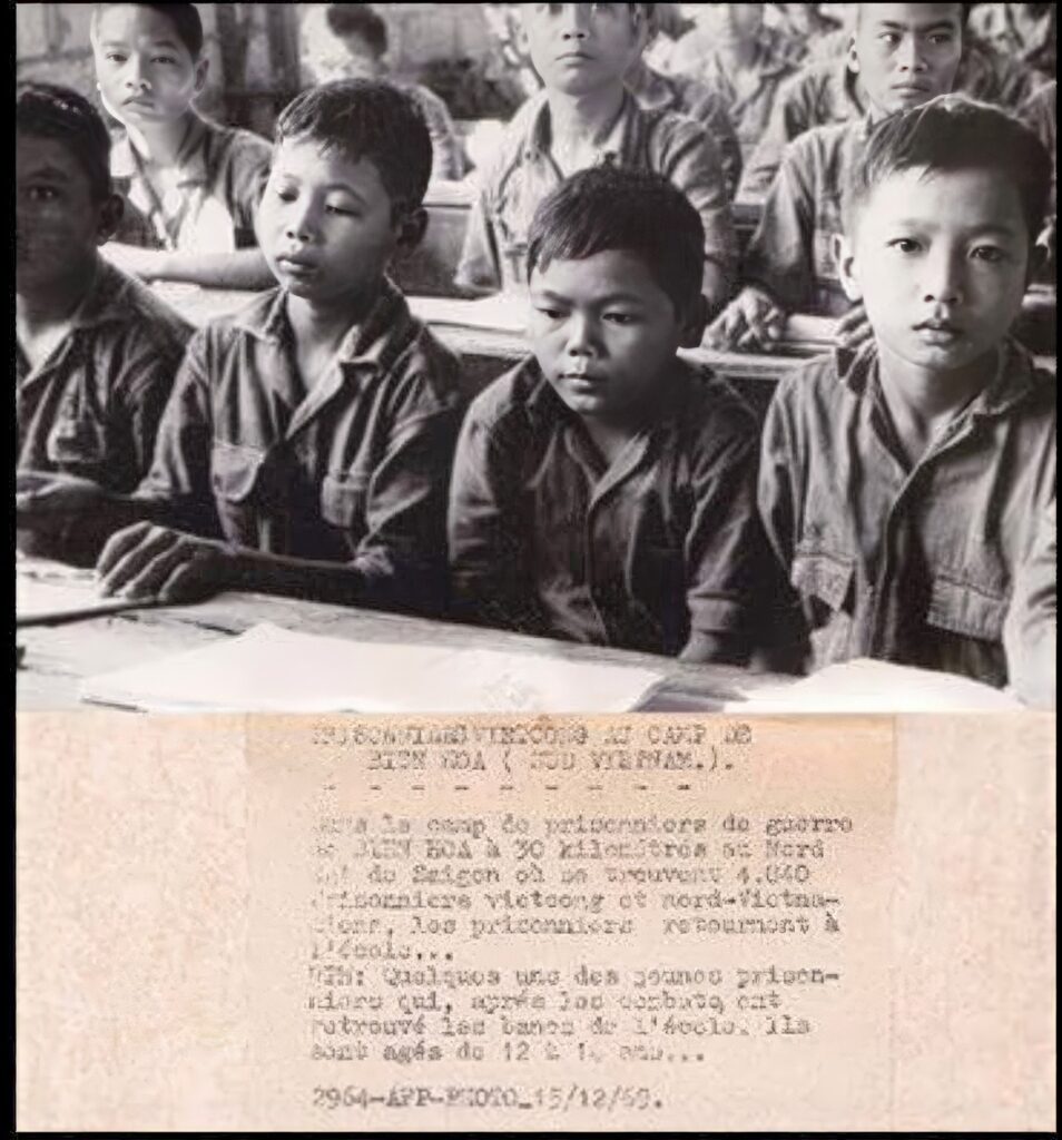 Tù binh Bắc Việt vị thành niên được tổ chức cho đi học, ảnh do AFP ghi lại năm 1969